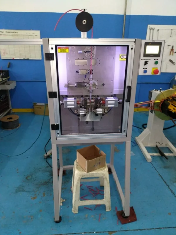 A máquina de enrolar cabo de aço é uma moderna ferramenta cuja função, como a sua nomenclatura sugere, é auxiliar os clientes a organizar e enrolar fios e cabos dos mais diversos modelos. Por operar de forma automática (com alimentação manual), a máquina de enrolar cabo de aço é acionada via um pedal elétrico, a fim de facilitar esta operação - que tomaria um considerável tempo em processos feitos manualmente. De configuração versátil e personalizável, a máquina de enrolar cabo de aço atende a um vasto número de demandas e modelos de cabos. Além disso, o equipamento possui velocidade variável com potenciômetro.